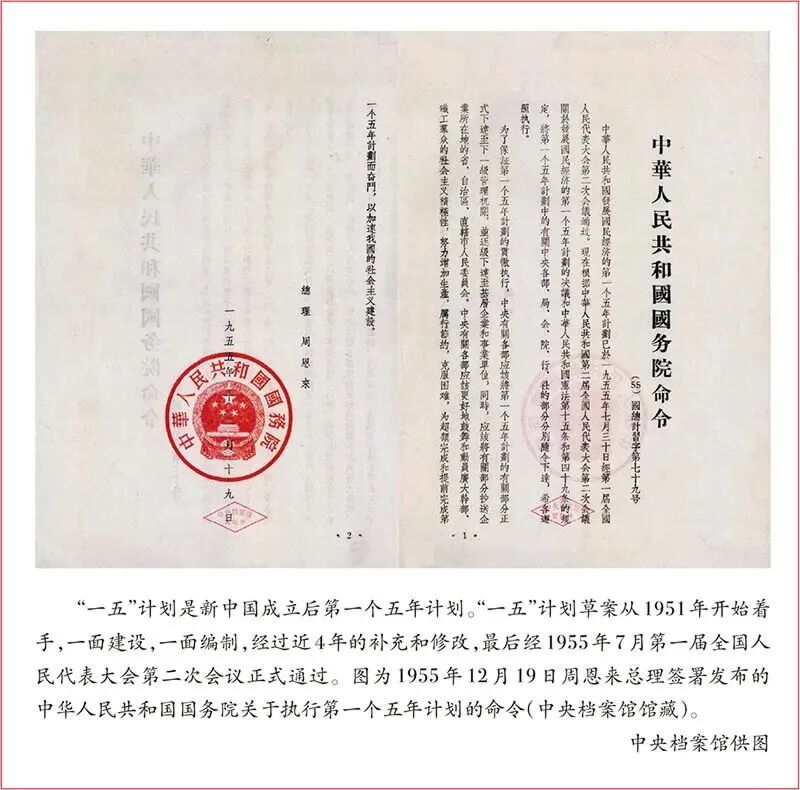 1955年7月30日,第一届全国人民代表大会第二次会议正式审议并通过了《中华人民共和国发展国民经济的第一个五年计划(1953-1957)》。会议认为,这个计划“是全国人民为实现过渡时期总任务而奋斗的带有决定意义的纲领,是和平的经济建设和文化建设的计划”。此时,距离计划开始实施已过去两年多。