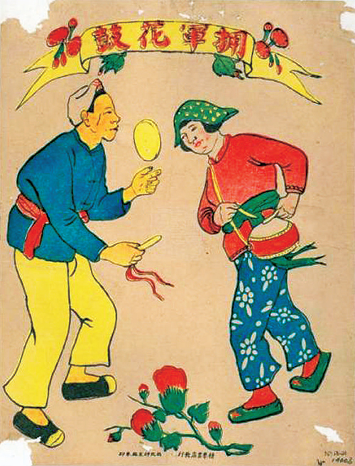▲根据歌曲创作的年画《拥军花鼓》。 资料照片