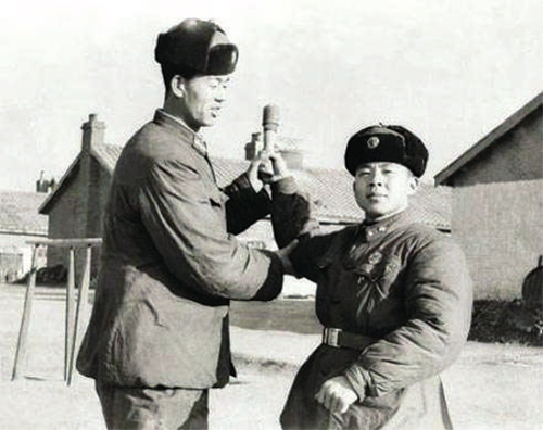 练习过程中,惠连生不时上前纠正雷锋的投掷姿势,给他传授投弹技巧。季增见状,赶紧按下快门,拍下了这张惠连生辅导雷锋练习投掷手榴弹的珍贵照片。