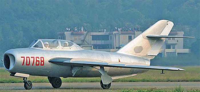▲编号为“中0101”的第一架国产歼-5战斗机。