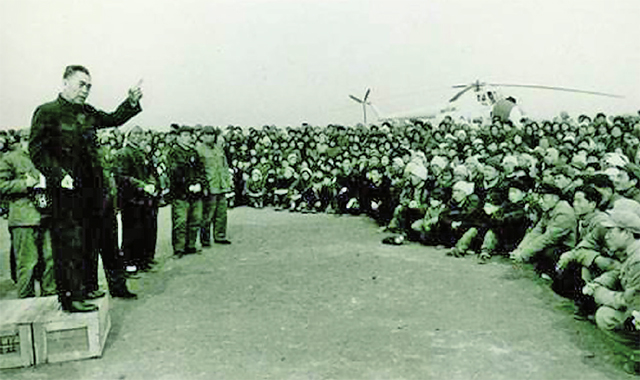 ▲1966年,周恩来总理乘坐直-5直升机视察邢台地震灾区,人群后方即为直-5直升机。