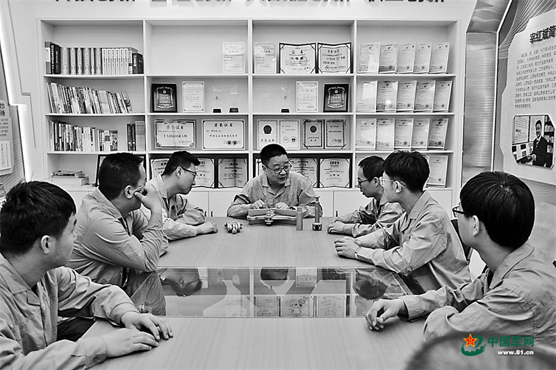 宰红斌(中)与工作室成员讨论交流。王昊 摄