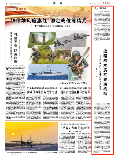 用兵在智,胜战在术。信息化智能化战争,既是各种新式武器装备的比拼,更是双方官兵军事素质、战斗素养的较量。在朝鲜战场上,志愿军发挥近战、夜战的特有优势,灵活运用“夜间奇袭”“迂回穿插”“零敲牛皮糖”等战法,以劣势装备打败了“武装到牙齿”的美国军队。美第8集团军司令官马克斯韦尔·泰勒深有体会地说:“他们很会运用战术来降低我们的火力优势。”当今时代,战争形态深度演进,作战样式不断翻新,我军必须熟练掌握和运用灵活机动的战略战术,并因时因地因对象不同而不断创新发展。