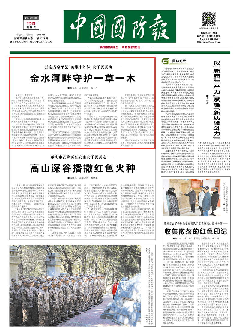 “女民兵熟悉边境线上的一草一木,个个都是‘边防通’。”金平县人武部政委王家谱告诉记者,新一代女子民兵班的民兵全部是第一代女民兵的女儿或儿媳。她们以母辈为榜样,虚心好学、刻苦钻研,边境情况“一口清”“一眼准”。