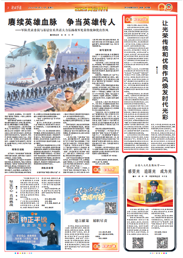 精神财富穿越时空,伟大事业薪火相传。光荣传统和优良作风的生命力在于传承和弘扬。新征程上,我们必须充分认识把握继承和发扬我军光荣传统和优良作风的时代意义,让光荣传统和优良作风焕发时代光彩。