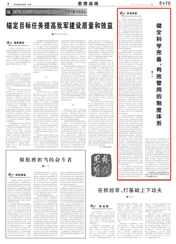 全面从严治党政治性、原则性强,必须有一套科学完备的制度来规范。《求是》杂志2025年第4期发表习近平总书记的重要文章《健全全面从严治党体系》,文中提出要“健全科学完备、有效管用的制度体系”。加强党内法规制度建设,是全面从严治党的长远之策、根本之策,是最可靠、最有效、最持久的管党治党方式。新征程上,我们要深入学习领会习近平总书记重要讲话精神,把握健全科学完备、有效管用的制度体系的内涵要义和实践要求,强化制度治党、依规治党的高度自觉,推动全面从严治党在法规制度轨道上向纵深发展。