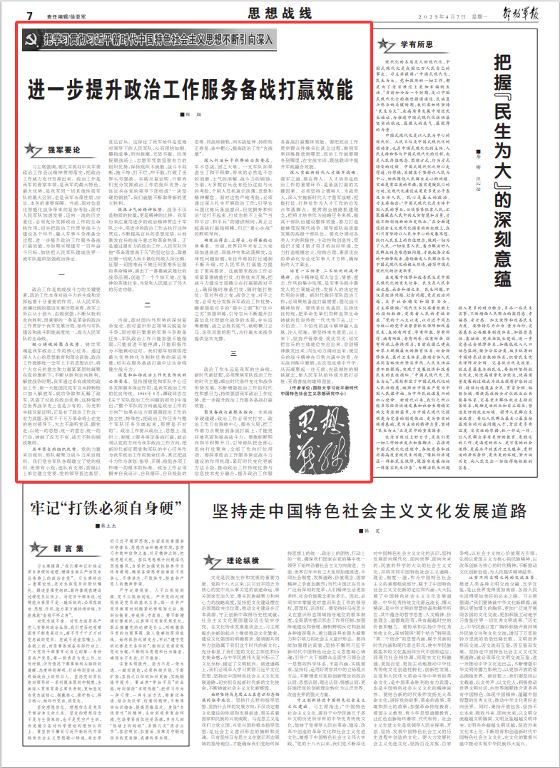 进一步提升政治工作服务备战打赢效能