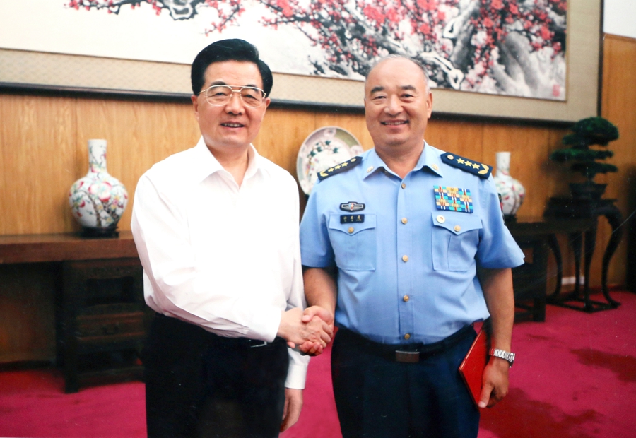 2012年9月3日,胡锦涛同志在中南海与许其亮同志合影留念。