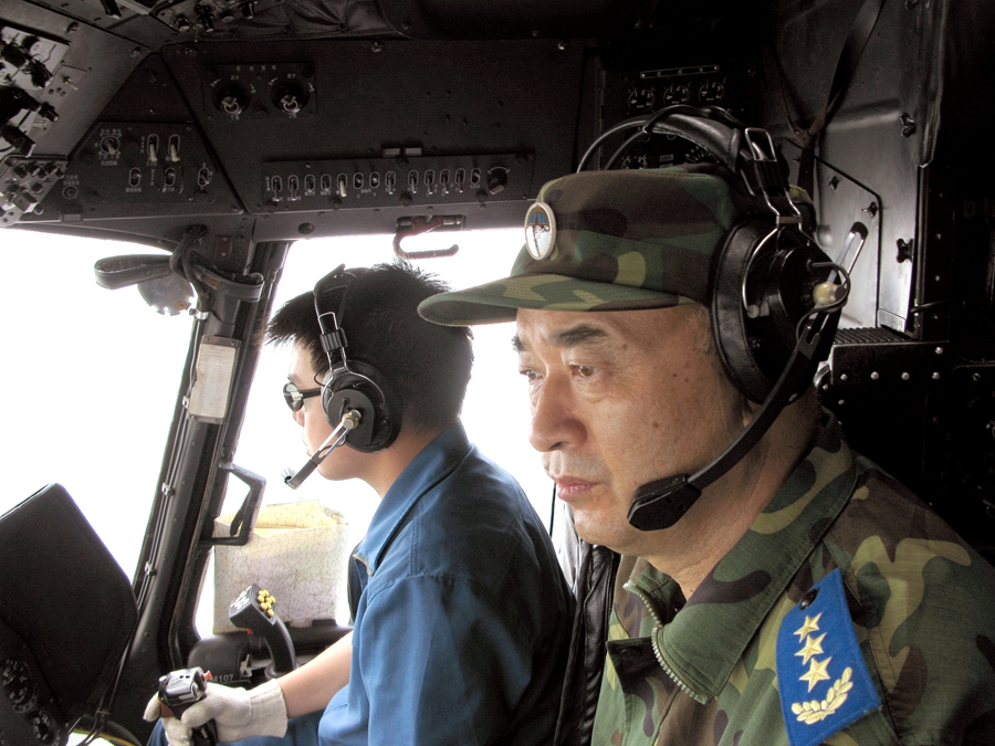 2008年5月19日,许其亮同志乘坐空军飞机勘察汶川地震灾情。