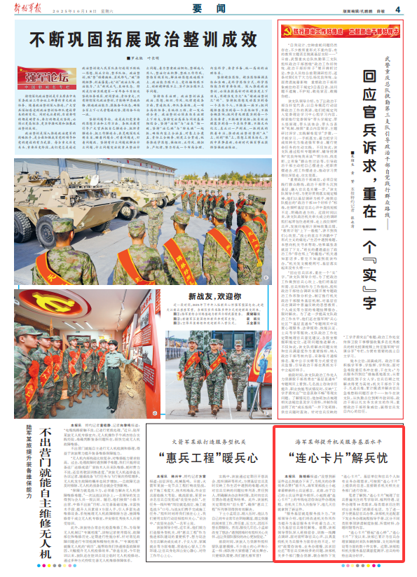 “服务基层就是服务战斗力。”该部领导介绍,他们将改进机关作风作为提升为基层服务水平的着力点,大力为基层官兵排忧解难。前期,该部领导带队深入班排宿舍、训练一线蹲点调研,面对面听取官兵心声,认真查找机关为兵服务方面存在的不足。针对“政策咨询难、业务办理慢、诉求回应迟”等官兵反映较多的问题,该部机关多个部门整合资源,联合制作下发“连心卡片”。基层单位和官兵个人如有业务办理需求,可按照“连心卡片”上提供的信息,直接联系机关相关业务部门进行咨询。