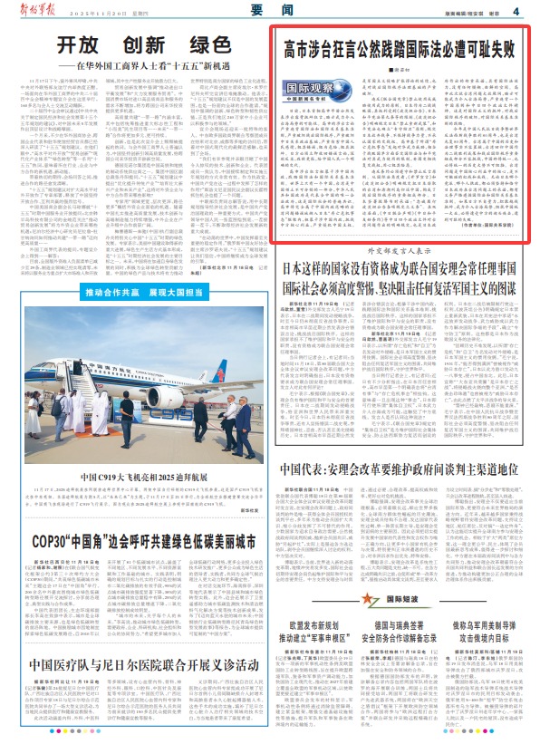 高市涉台狂言公然践踏国际法必遭可耻失败