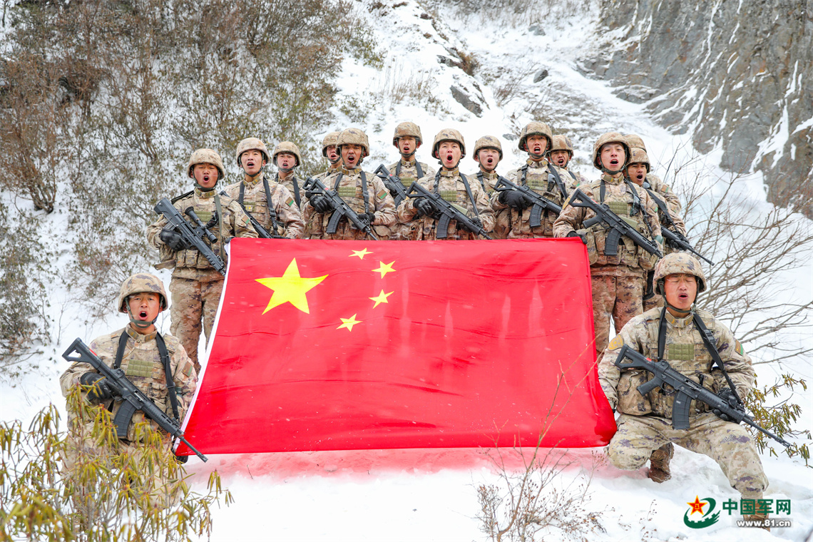 △次罗布与战友们到达巡逻点位后展旗宣誓。