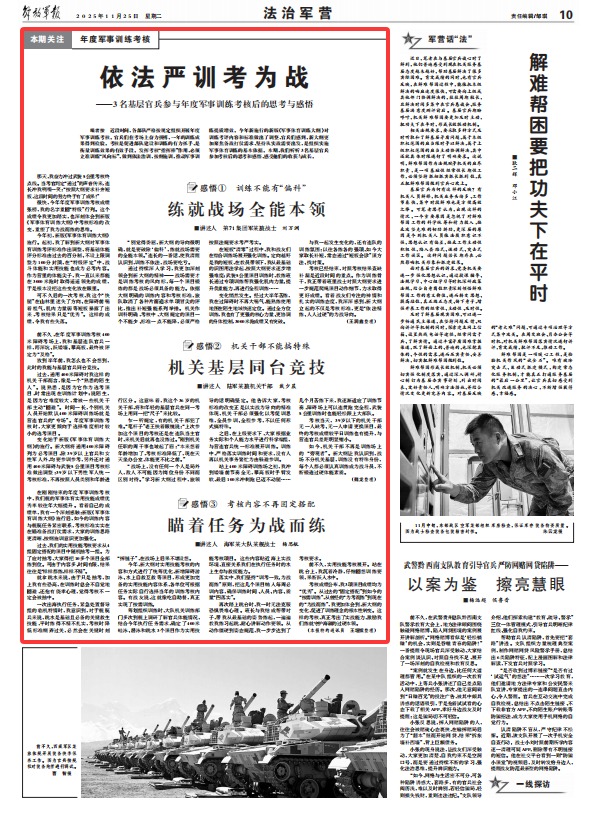 ——3名基层官兵参与年度军事训练考核后的思考与感悟