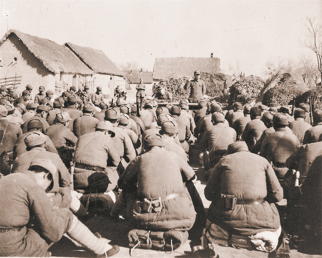 1950年5月1日,中共中央发出指示,决定在全党全军开展一次大规模整风运动。图为解放军某部进行思想动员。