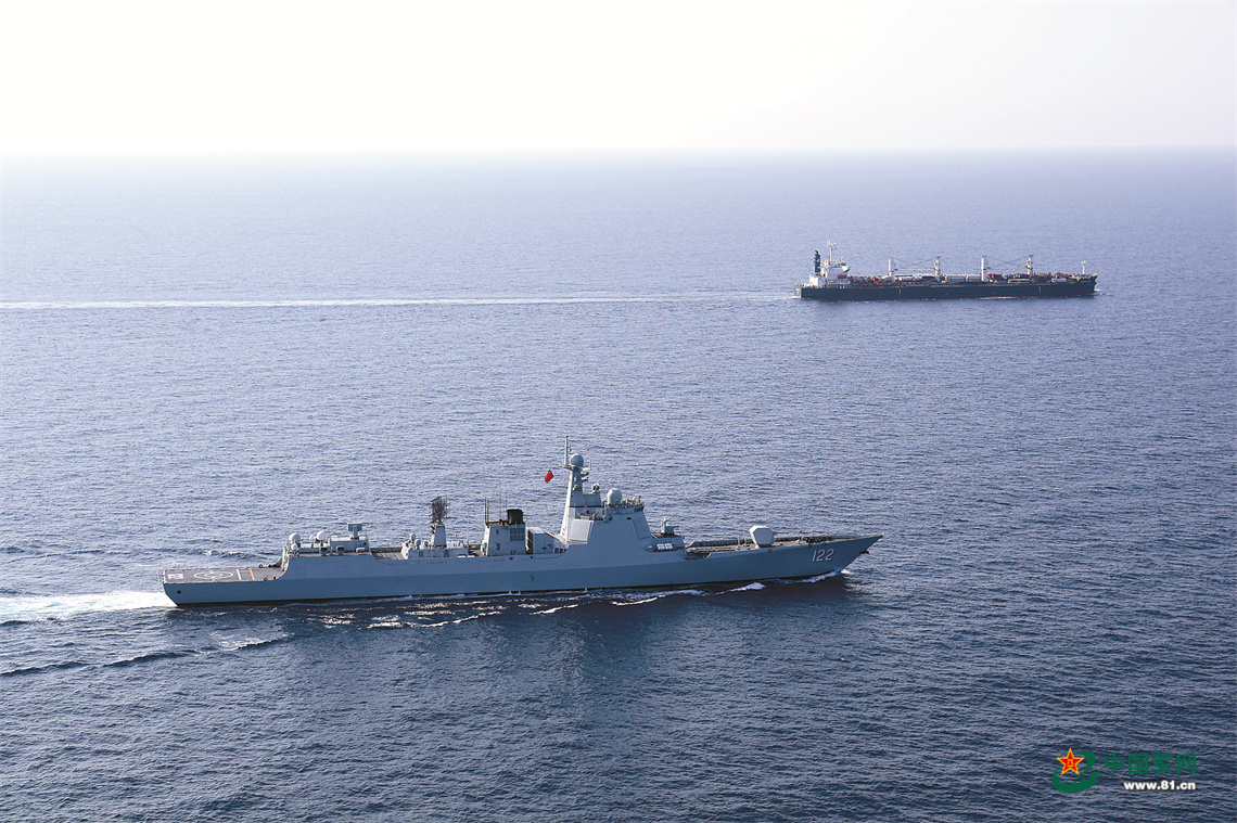 海军第48批护航编队舰艇顺利护送船舶通过亚丁湾。杜江帆摄