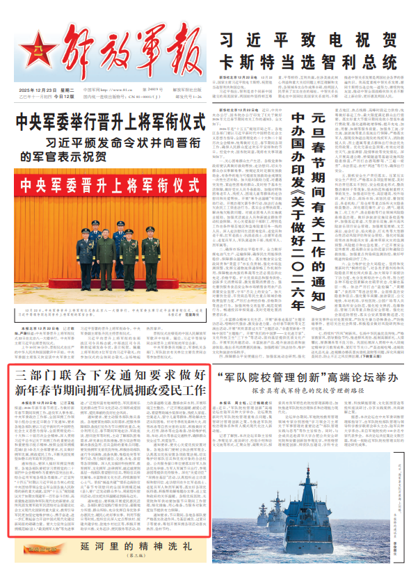 解放军报北京12月22日电 记者王钰报道:2026年新年春节将至,为做好新年春节期间双拥工作,退役军人事务部、中央军委政治工作部、全国双拥工作领导小组办公室近日联合下发通知,要求各地各部队要以习近平新时代中国特色社会主义思想为指导,全面贯彻党的二十大和二十届历次全会精神,深入贯彻习近平总书记关于双拥工作的重要论述和重要指示批示精神,按照全国双拥模范城(县)命名大会部署要求,扎实做好拥军优属、拥政爱民工作,不断巩固发展坚如磐石的军政军民团结。