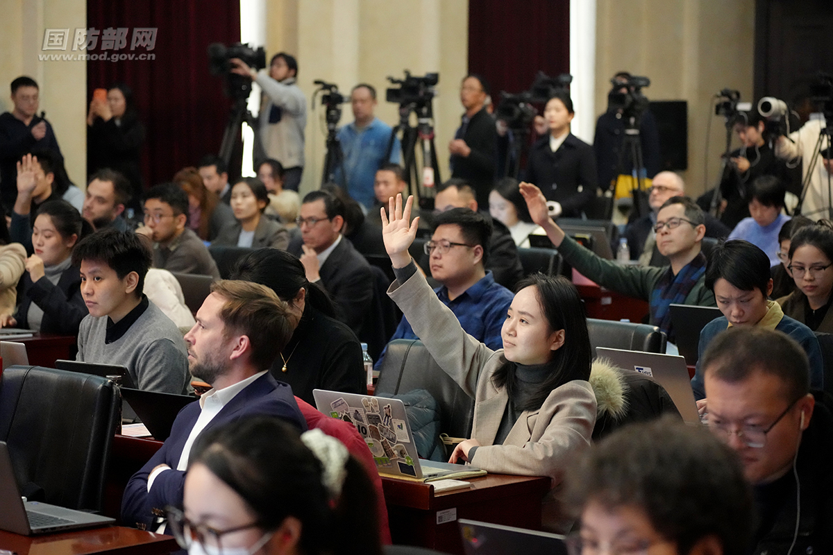 1月29日下午,国防部举行例行记者会,现场记者提问。孙悦 摄