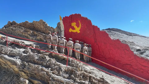 车至陡坡,无法前进。官兵背负设备,深一脚浅一脚踏雪而行。寒风刺骨,瞬间穿透防寒面罩,呼出的热气在官兵睫毛上凝成白霜。
