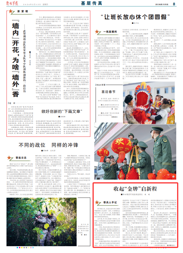 一开始,我还沉浸在自己荣誉的光环里。训练间隙,我常被大家围在中间,讲述如何在异国赛场突破重围,如何在体能极限时咬牙拼搏。我享受那些专注倾听的目光,并认为自己可以用比武荣光点燃大家的士气,用个人经历引领他们成长。