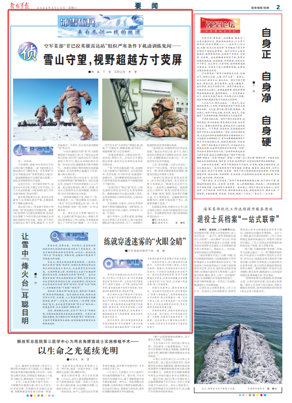 同时,要清醒认识到,让雪中“烽火台”耳聪目明,归根结底要靠每名官兵的主动警觉。只有让“敌情就在眼前、战斗随时打响”的思想“烽火”常燃不熄,才能牢牢掌握战场主动权,切实担起维护国家安全的神圣使命。