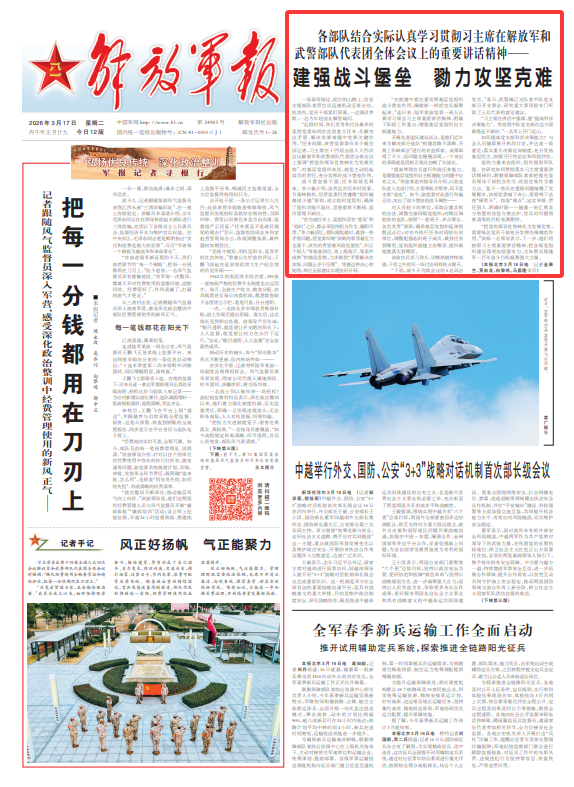 (解放军报北京3月16日电 记者金雅兰、贾启龙、向黎鸣、马嘉隆采写)