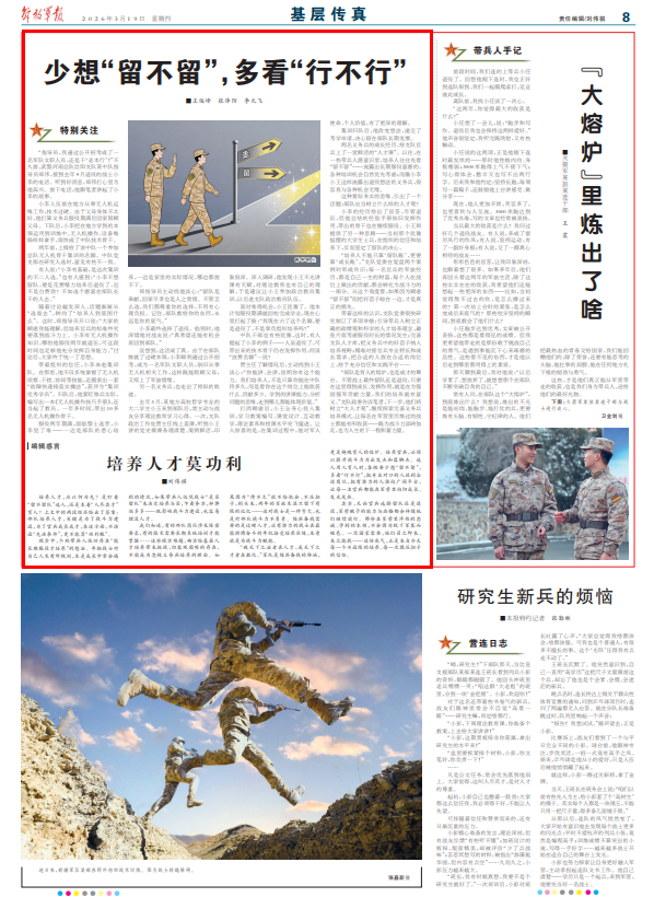 中队干部也有些犹豫,这时,有人提起了小李的例子——人虽退役了,可带出来的技术骨干仍在发挥作用,何谈“浪费名额”一说?