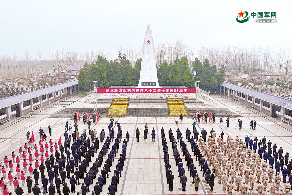 3月18日,江苏淮安新四军刘老庄连纪念园内庄严肃穆,纪念新四军“刘老庄连”八十二烈士殉国83周年活动隆重举行。