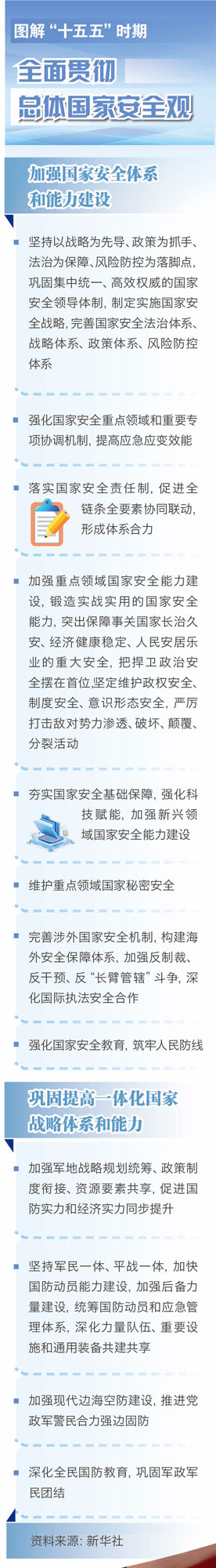其次是对新理念新思想新观点的贯彻落实。过去几年间,习主席提出包括“加快构建新安全格局”“统筹维护和塑造国家安全”“全球安全倡议”“全面加强军事治理”“加快先进战斗力建设”等在内的一系列新理念新思想新观点,这些已成为习近平新时代中国特色社会主义思想的重要内容,必须在国家发展规划中全面贯彻和落实。