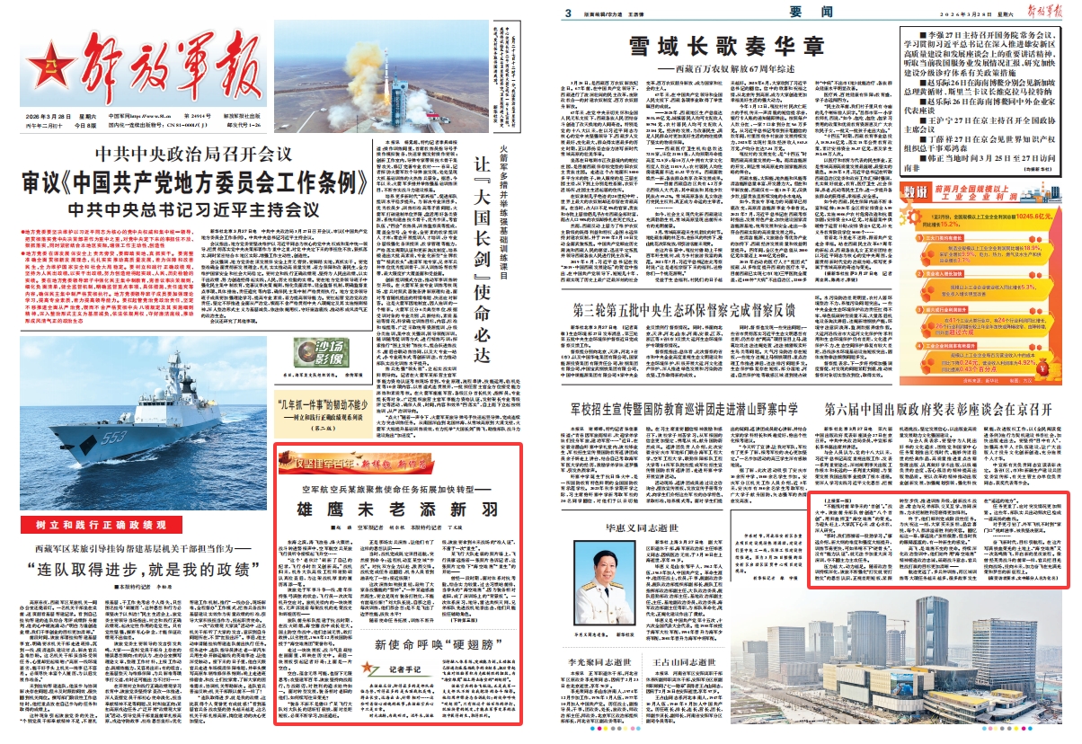 该旅官兵的奋飞航迹,正是我军一支支部队不断自我挖潜的奋斗缩影。他们用冲锋姿态告诉我们:新使命呼唤“硬翅膀”,只有经过千锤百炼的摔打、脱胎换骨的蜕变,才能在军事变革的浪潮中获得新生、取得胜利。