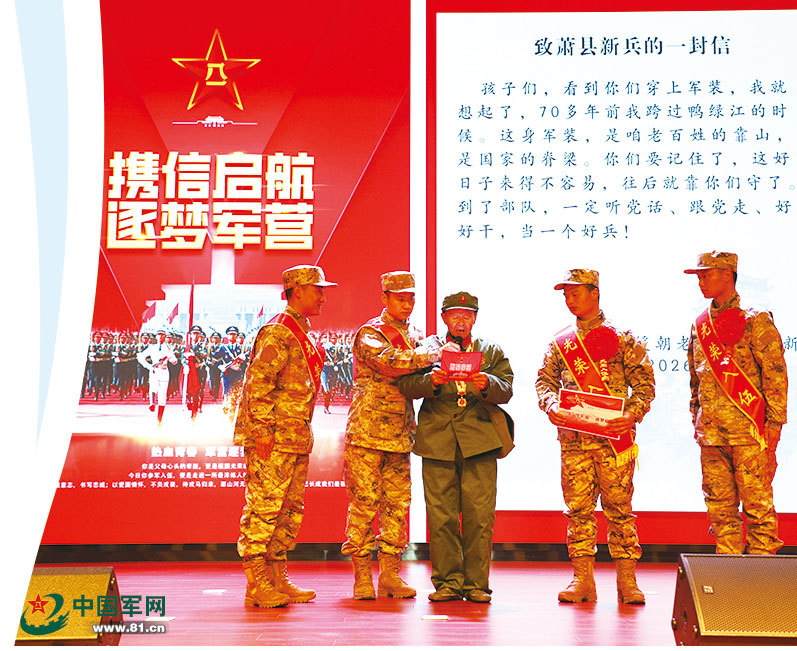 太行山麓的八路军太行纪念馆广场前,10面荣誉战旗重回故里,在《钢铁洪流进行曲》中为新兵壮行;董存瑞家乡河北省怀来县,新兵们面对英雄雕像庄严宣誓“学习董存瑞,建功在军营”,从家乡父老手中接过“存瑞传人”的旗帜;安徽省萧县淮海战役总前委会议暨华东野战军指挥部旧址,104岁抗美援朝老兵王志新写信激励新兵坚定报国信念:“好日子来得不容易,到了部队要听党话、跟党走、好好干,当一个好兵。”