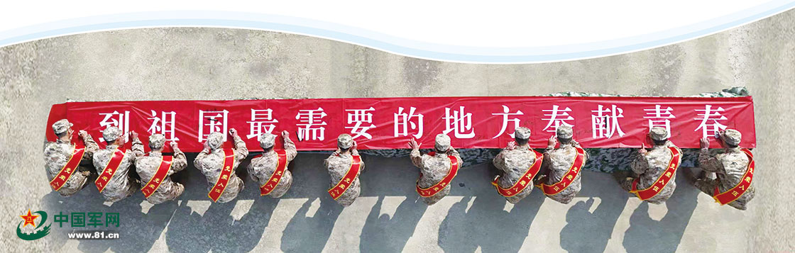 “接过前辈的枪,扛起英雄的旗,续写清澈的爱!”安徽省泗县新兵杨乐天申请到艰苦边远地区服役,新兵欢送仪式上,杨乐天在印有“到祖国最需要的地方奉献青春”的横幅上,写下自己的誓言。
