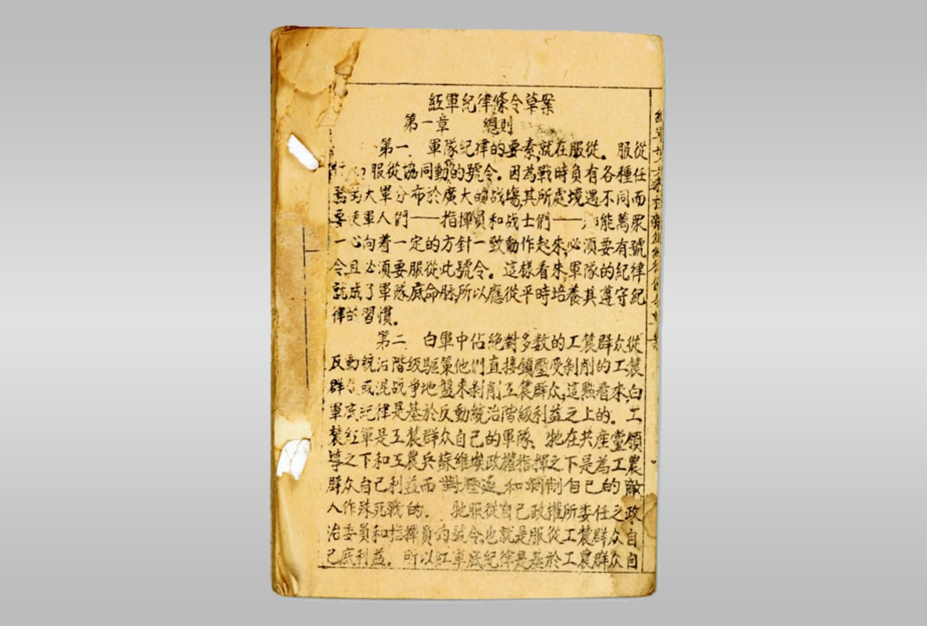 1930年,我军首部纪律条令颁布。