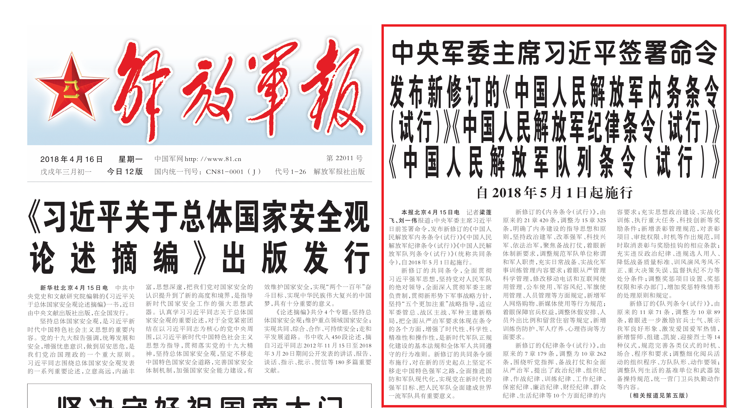 ▲习主席两次签署命令,发布新的共同条令