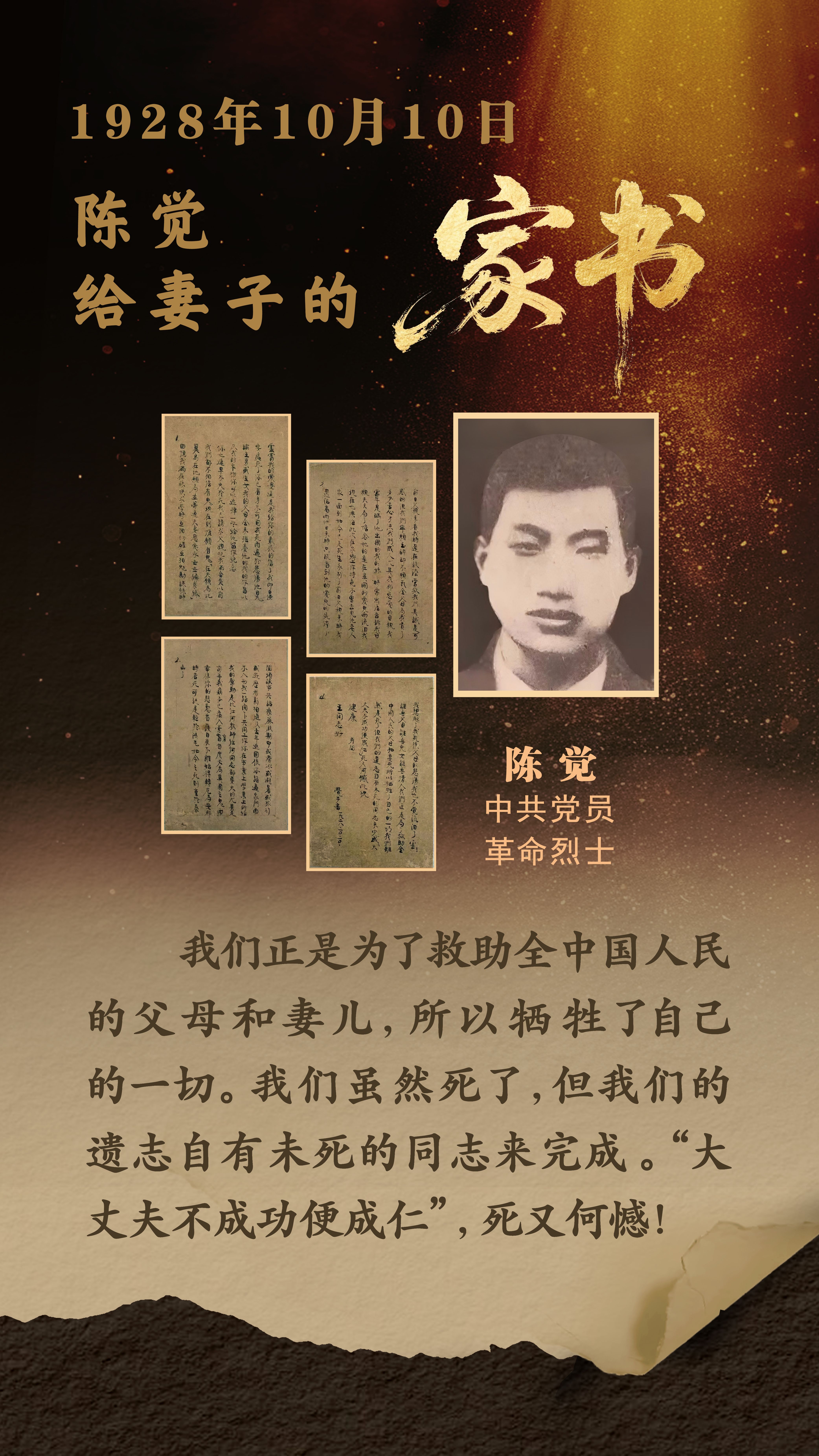 “烽火连三月,家书抵万金。”在革命战争年代的烽火岁月里,一封封家书穿越硝烟,承载着革命先辈的忠诚信念和炽热情怀。这些家书,既诉说着血与火的历史,更饱含着他们对亲人的无限思念和对革命的坚定理想。让我们从泛黄纸页上流淌的文字中,重温先辈们感人至深的家国情怀。