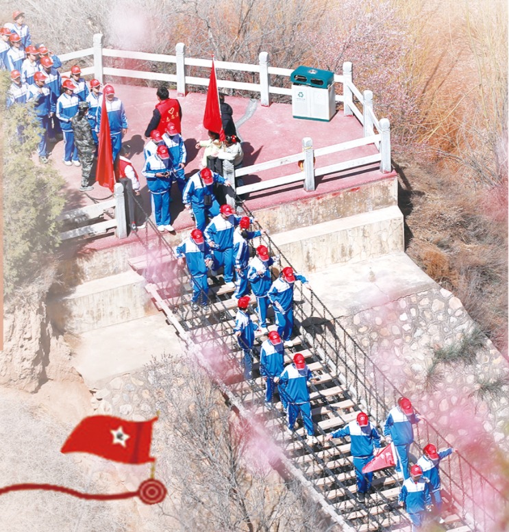 “水湍急,山峭耸,雄关险,豺狼凶。健儿巧渡金沙江,兄弟民族夹道迎……”晨光熹微,河水的拍岸声中,四川省泸定中学百余名师生组成的队伍,沿着大渡河畔踏歌而行。这是该县组织学生开展的“重走红军长征路”主题思政课活动。