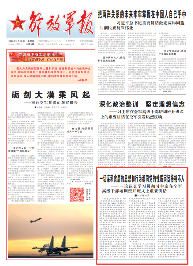“我们党是始终代表最广大人民根本利益的马克思主义政党,没有任何自己的特殊利益,一切谋私贪腐的思想和行为都同党的性质宗旨格格不入。”习主席在全军高级干部培训班开班式上发表的重要讲话,深入阐明我们党的性质宗旨,深刻揭示谋私贪腐与我党性质宗旨水火不容的对立关系,对于进一步巩固深化政治整训成果,确保军队高级干部队伍筑牢拒腐防变的思想防线、永葆清正廉洁的政治本色,确保人民军队不变质、不变色、不变味,具有十分重要的指导意义。