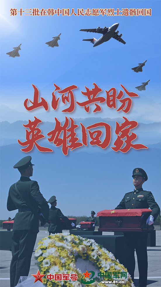 春风拂山河,忠魂终归家。今天,第十三批在韩中国人民志愿军烈士遗骸归国,我们以大国重器为礼,让先辈见证山河无恙,国泰民安。山河不忘英烈,精神代代相传,向英雄致敬!