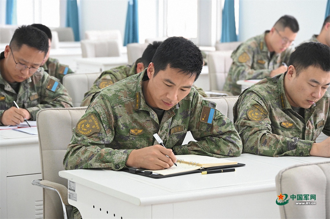 北部战区空军某部多措并举提升部队战斗力。图为“研战课堂”上机关干部认真学习。刘军毅 摄