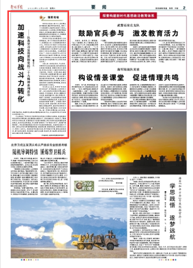 科学技术是核心战斗力,是军事发展中最活跃、最具革命性的因素。党的二十大报告要求,加速科技向战斗力转化。这就告诉我们,无论是抢占军事竞争战略制高点,还是锻造打赢现代化战争能力,都要坚持向科技创新要战斗力,不断提高科技创新对战斗力增长的贡献率。