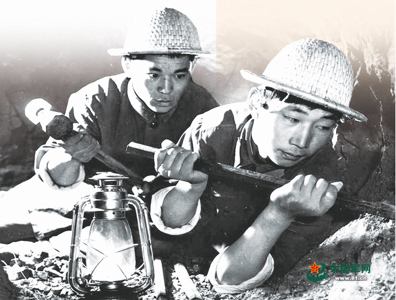 独库公路施工期间,解放军工程兵靠锤子、钢钎开凿玉希莫勒盖隧道。资料图片