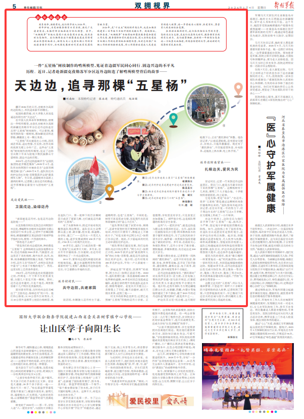 这傲立边关的“五星杨”,何以令人魂牵梦萦、千里追寻?聆听六十余载军民守望相助的动人故事,记者找到了答案:只因那挺拔的枝干,早已镌刻下戍边官兵的忠诚与坚守;那闪耀的五星,辉映着军民同心筑起的长城。