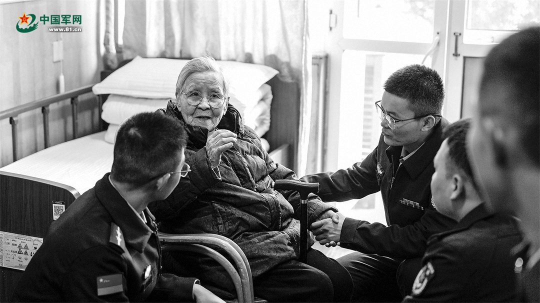 阳光房内,国防大学政治学院某学员队的学员们,手捧精心订制的生日蛋糕,为面前20多位白发苍苍的老人唱起生日歌。92岁高龄的罗学文老人紧紧握住学员马绪豪的手,眼眶湿润:“这是我第8次和‘兵儿女’一起过生日。”