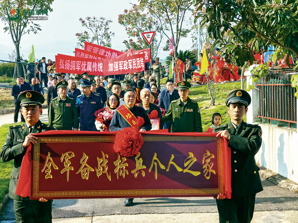 近日,江西省九江市濂溪区军地组成联合送喜报队伍,为“全军备战标兵个人”钟磊家庭送喜报。胡凯波摄