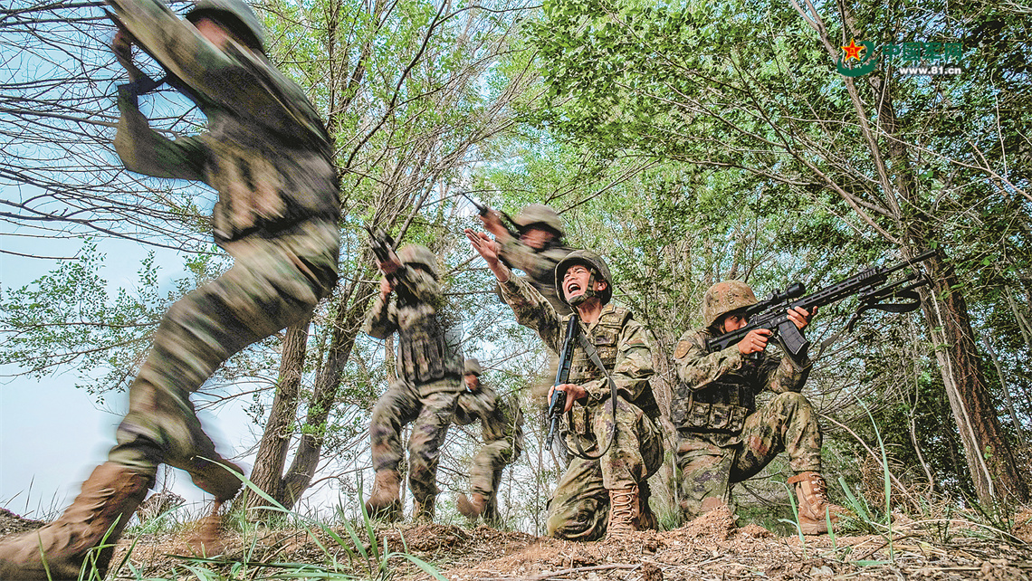 徐雪江(右二)指挥班组展开进攻行动。曾阳程摄