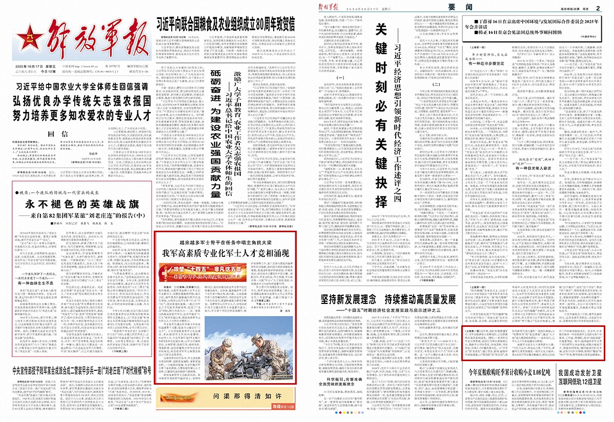 来源:中国军网-解放军报 作者:张琳 卫雨檬 责任编辑:徐占虎 发布:2025-10-17 06:27:49