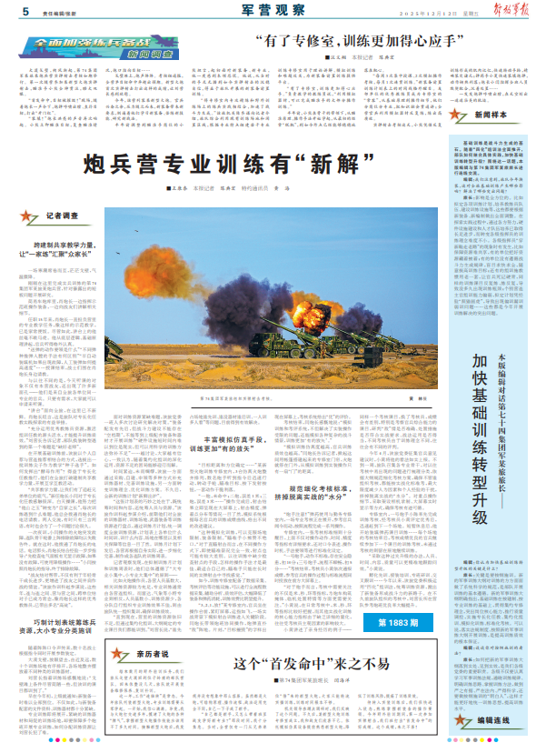 孵化先训、接装培训、专班研训、交叉跟训……今年以来,该旅党委积极运用“四化”组训法,统筹训练资源,蹚出了新装备形成战斗力的新路子。在不久前旅队组织的考核中,刘营长所在营队参考炮班优良率大幅提升。