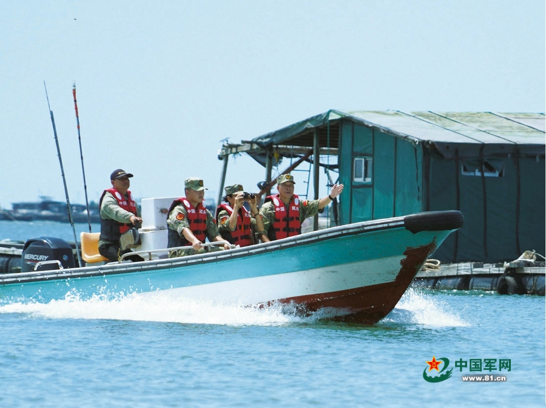 刘华强带领民兵在海上巡逻。解放军报记者 王德赛摄