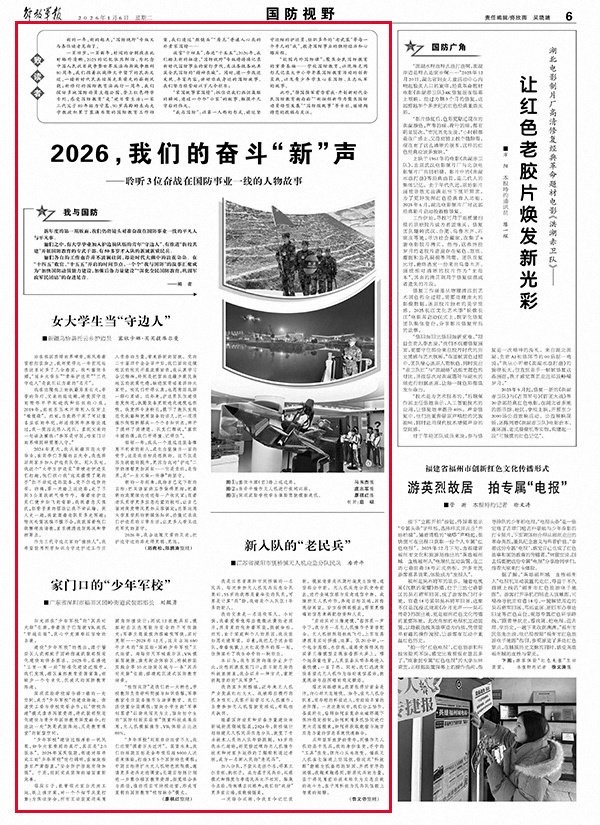 他们各自的工作也许并不波澜壮阔,却是时代大潮中的浪花朵朵。在“十四五”收官、“十五五”开启的时间节点,一个个“我与国防”的故事汇聚成为“加快国防动员能力建设,加强后备力量建设”“深化全民国防教育,巩固军政军民团结”的奋进足音。