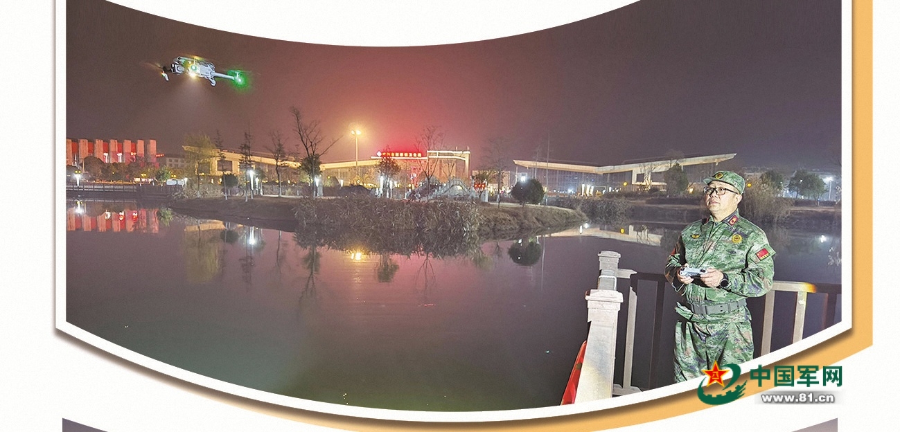 房升平操作无人机进行夜间训练。虞志军摄