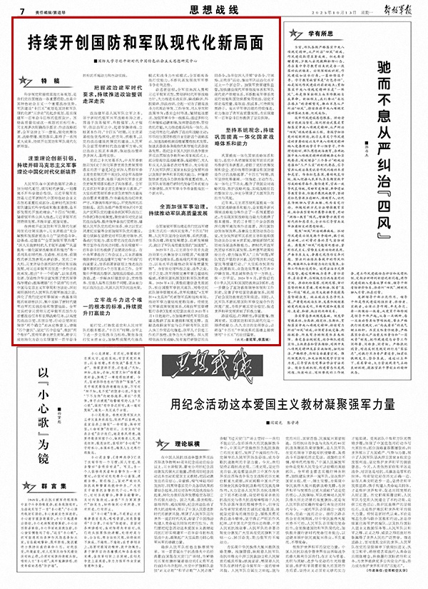 注重理论创新引领,持续开辟马克思主义军事理论中国化时代化新境界